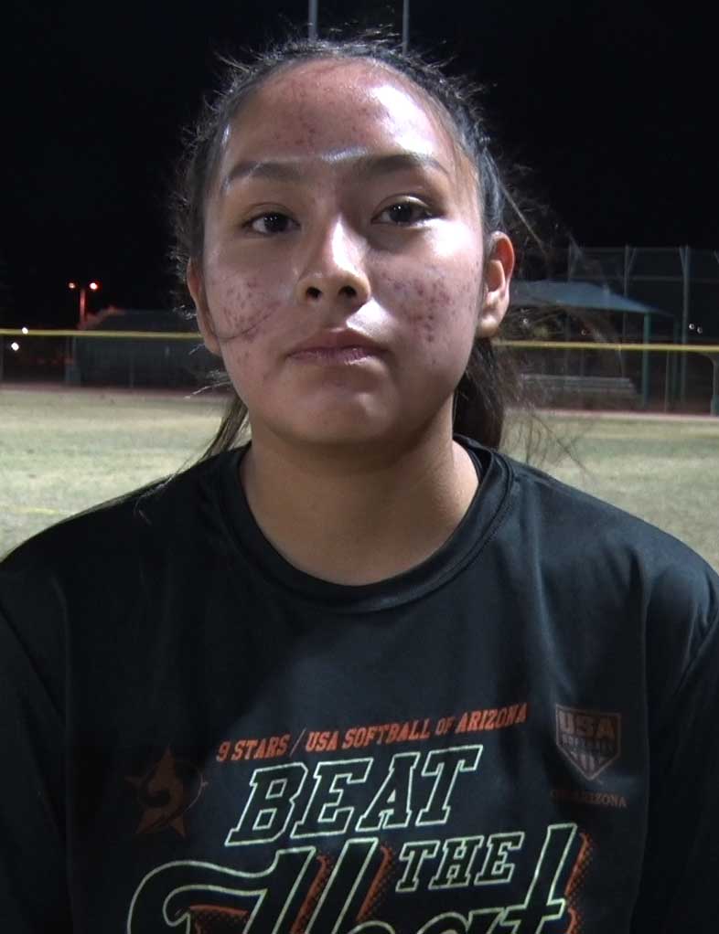 03/21/2021 - All-In Membership - Phoenix , AZ Kaylee is a 2022 RHP/SS with a developing skill set. On the mound, Kaylee has a calm and quiet presence. She showcased a 3-pitch package that she was able to control in the zone. Creating more leg drive and opening her hips will allow her to generate more velo. At SS, Kaylee handles the routine play well. She has active footwork and gets in line with her target to make accurate throws. Presenting her glove sooner will allow her field out in front and make a quicker exchange. In the box, Kaylee is a RHH that uses a square stance. She creates rhythm with a back load and does a nice job extending through contact. She shows natural pop when she barrels up. Working to create a weight transfer will allow her to engage her lower half and see more power production. Overall, Kaylee is a hard working player that will continue to improve her skill set with good coaching.